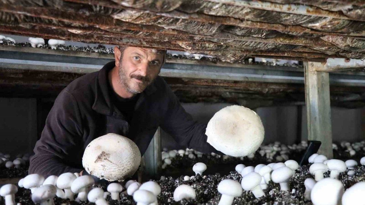 Erzurum’un Oltu ilçesinde kültür mantarı üretimi yapan Murat Özmen, yılın son hasadını toplamaya başladı.