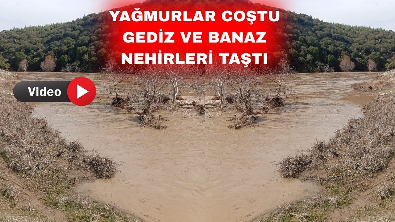 Banaz Çayı da yağışların etkisiyle coştu. Ama Uşak’ın batısından geçen Gediz Çayı ise Murat dağından gelene yağmur sularıyla çevresinde taşkınlara neden oldu.