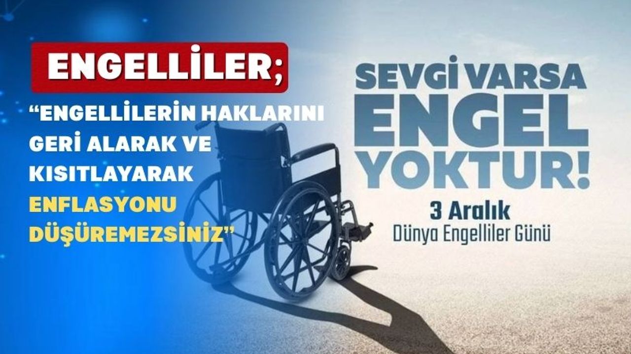 Enflasyonun sorumlusu engelliler değildir. Engellilerin haklarını geri alarak ve kısıtlayarak enflasyonu düşüremezsiniz. Kamu kurum ve kuruluşlarının savurganlıklarını önleyerek israftan kurtulun.