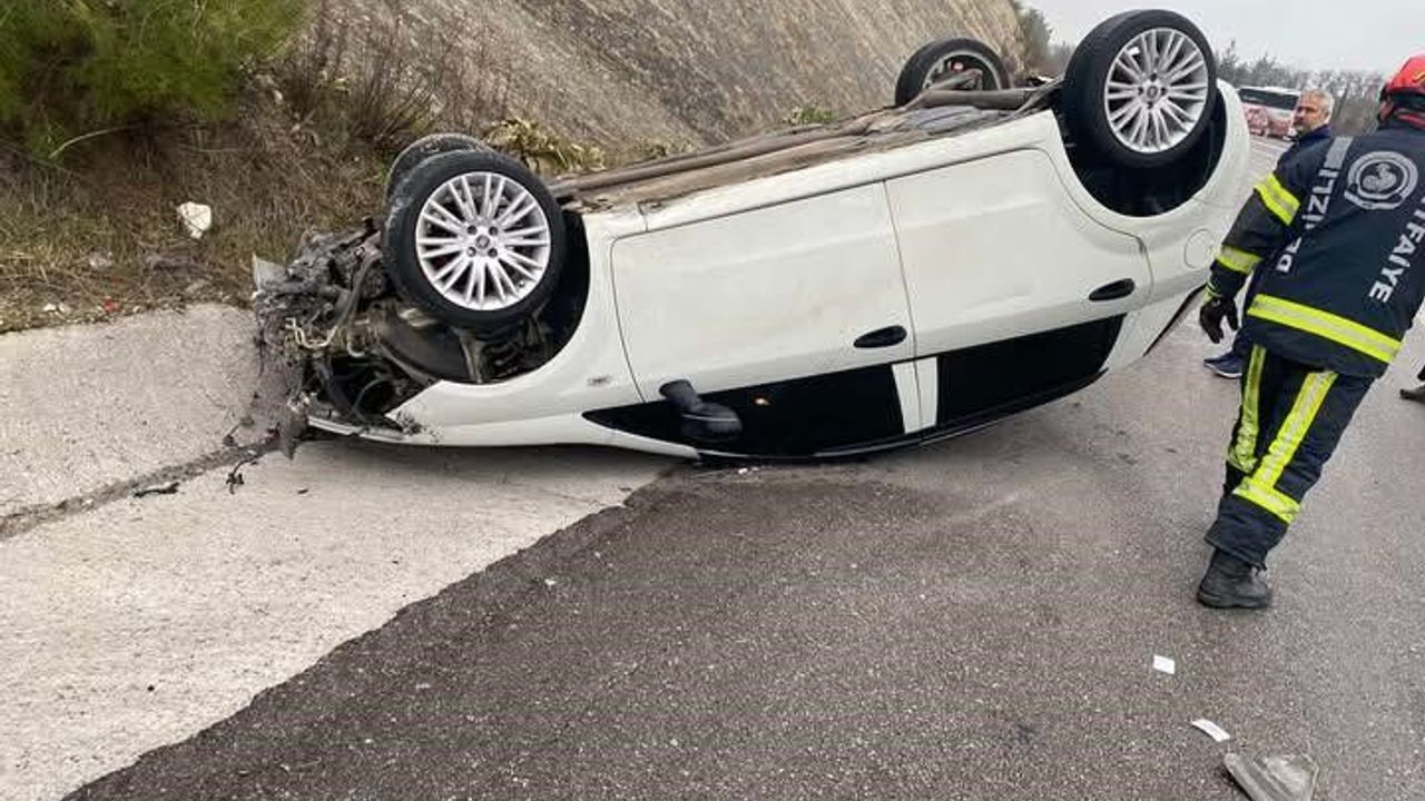 Denizli'de yağış sonrası kayganlaşan yolda kontrolden çıkan otomobil takla attı. Kazada ölen ya da yaralanan olmazken maddi hasar oluştu.