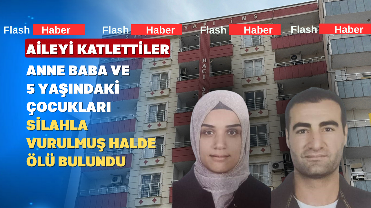 Mardin'in Kızıltepe ilçesinde anne, baba ve 5 yaşındaki çocukları evlerinde başlarından silahla vurulmuş halde ölü bulundu.