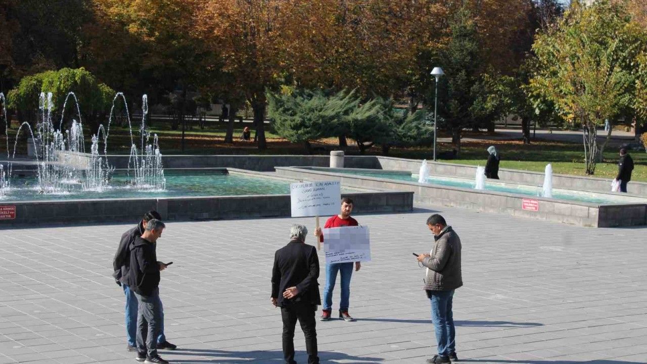 Kayseri’de boşanma davası 2019 yılından bu yana devam eden Doğan Bilgiç, yaptığı tek kişilik eylemde boşanmak ve çocuklarının koruma altına alınmasını istediğini belirtti.