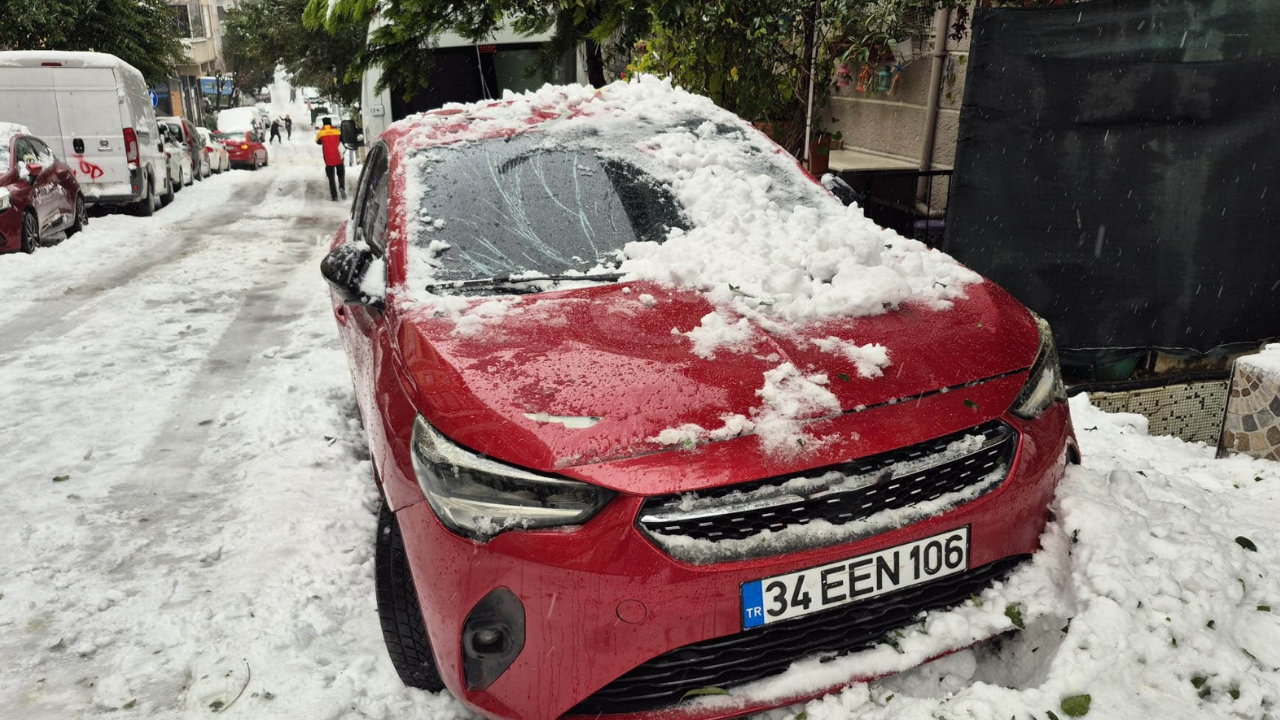 İstanbul Sultangazi'de kar yağışı nedeniyle bir binanın çatısında biriken kar kütlesi, sokakta park halindeki otomobilin üzerine düştü. Olayda şans eseri yaralanan olmazken, araçta büyük çapta maddi hasar meydana geldi.