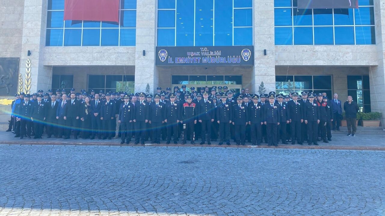 Uşak’ta Polis Haftası etkinlikleri kapsamında İl Emniyet Müdürlüğü önünde tören düzenlendi. Sabah saatlerinde başlayan program, Atatürk Anıtı’na çelenk sunulmasıyla start aldı. Ardından saygı duruşu ve İstiklal Marşı’nın okundu.