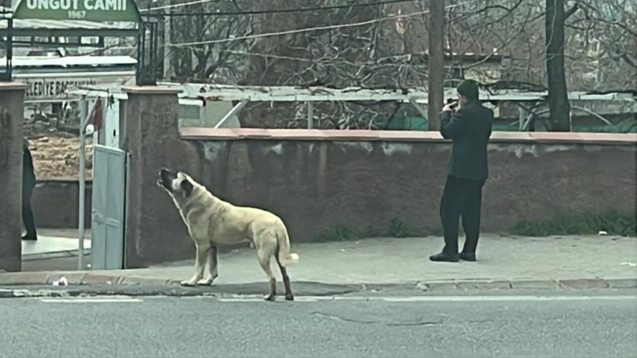 Kahramanmaraş'ta cami görevlisinin dışarıda mikrofonla ezan okuduğu sırada bir köpeğin ezanla birlikte uluması dikkat çekti.