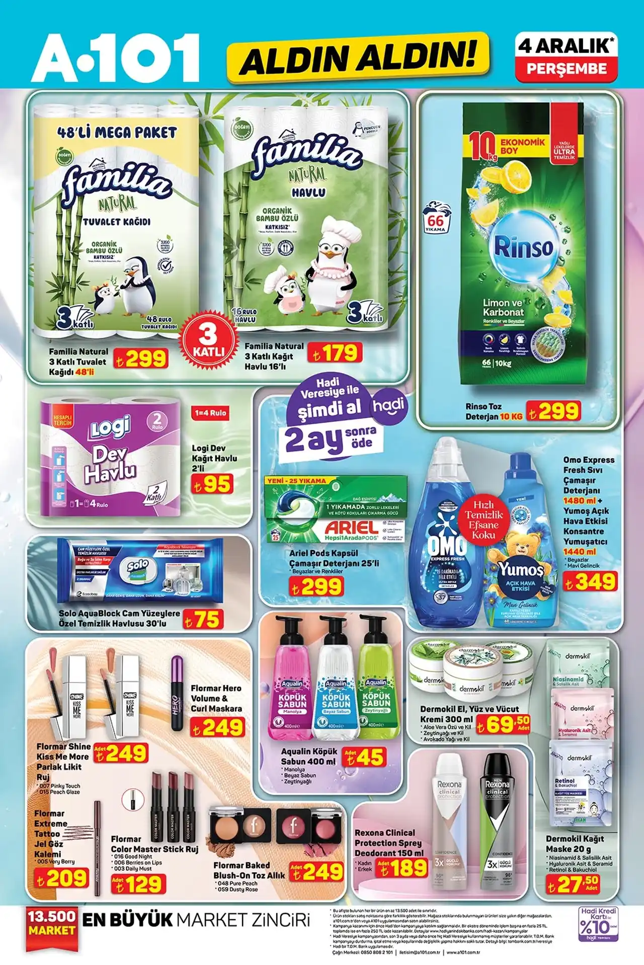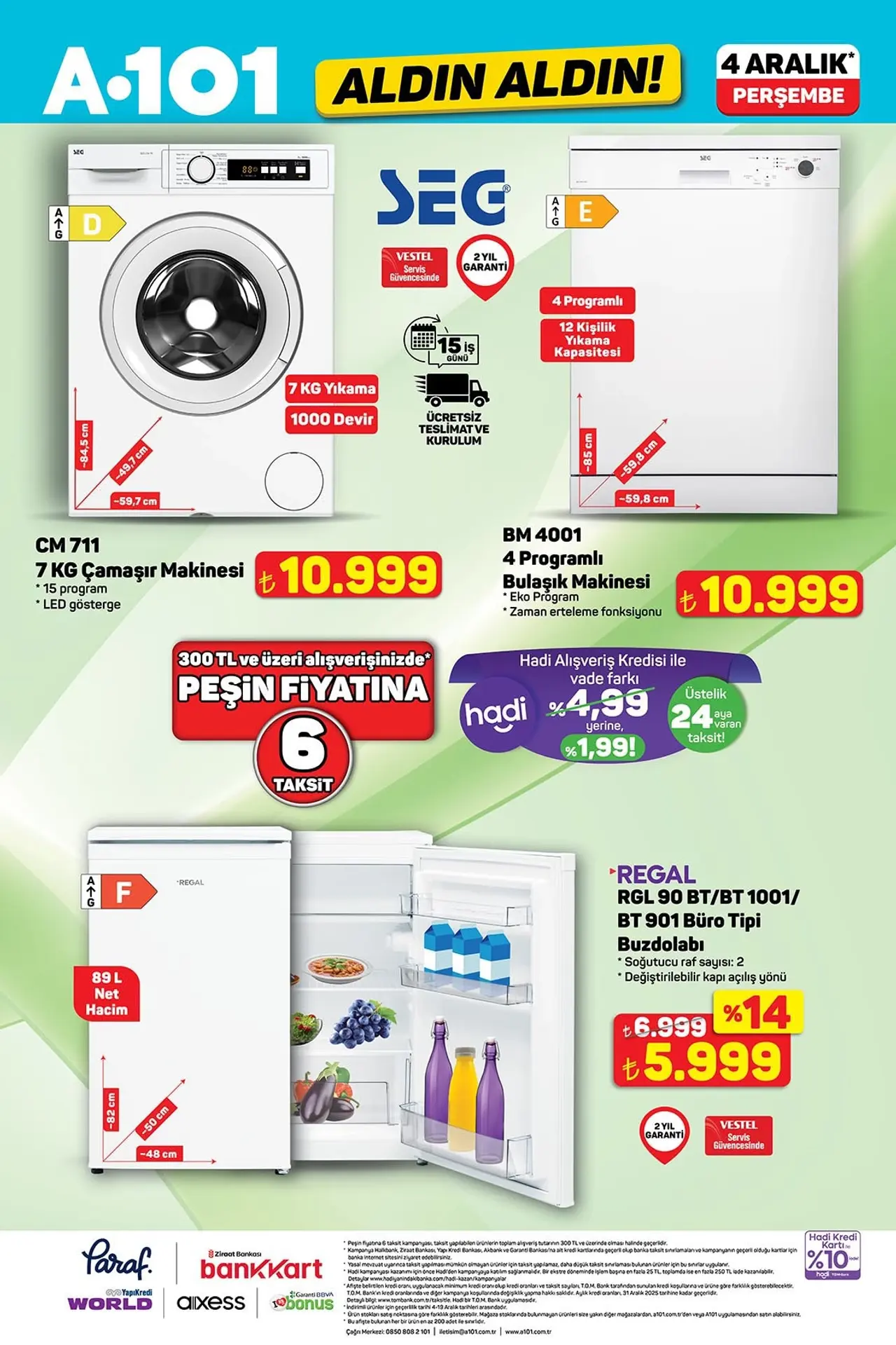 Perakende zinciri A101, 4 Aralık 2025 tarihli aktüel kataloğu ile bu hafta da tüketicilere özel indirim ve kampanyalar sundu. Özellikle televizyon ve elektronik ürünlerde cazip fiyatlar ve taksit avantajları dikkat çekiyor.