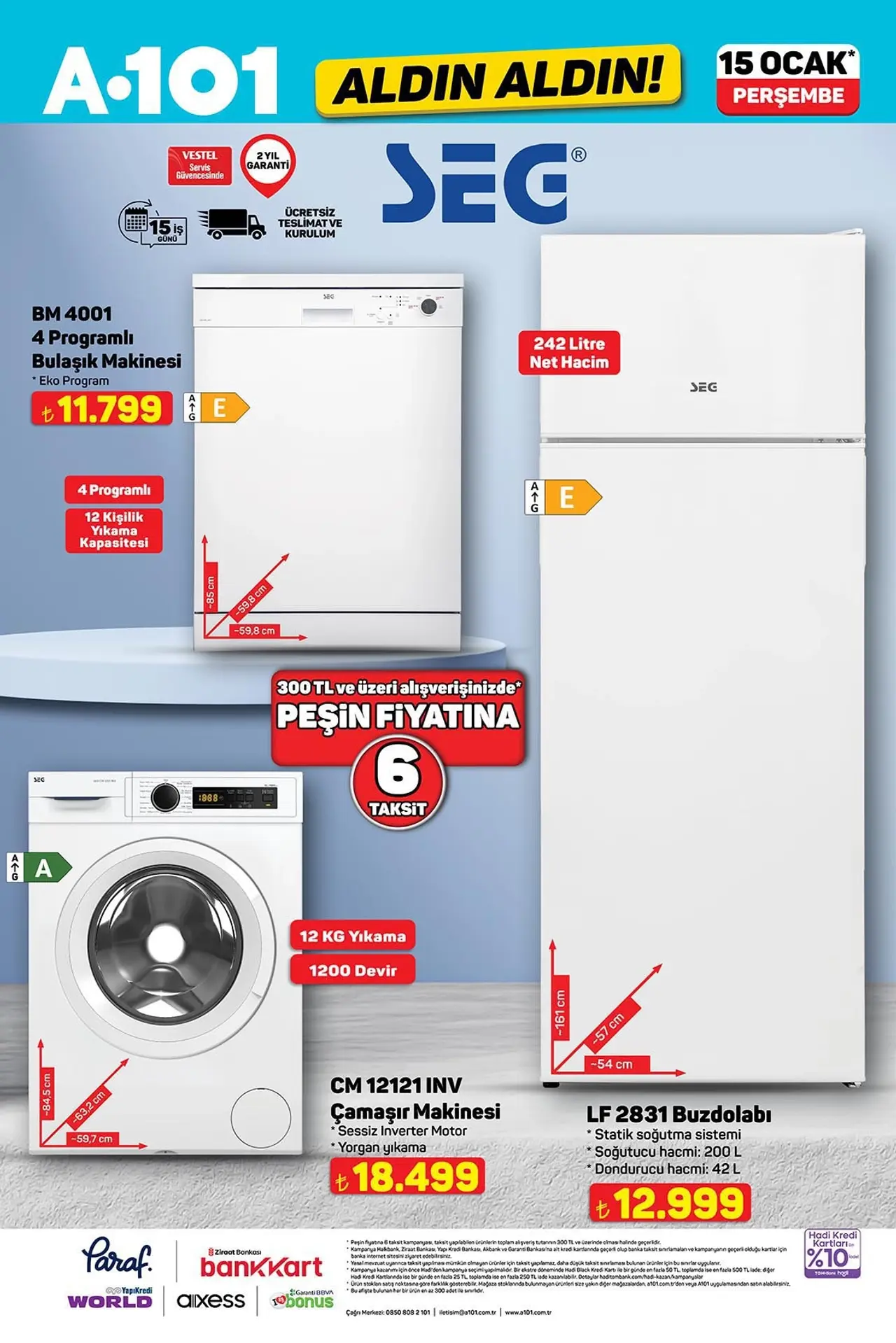 Beyaz eşya ihtiyacı olanlar için A101 bu hafta SEG markalı ürünlere odaklanıyor. Katalogda üç farklı SEG ürününe yer verilirken, bu markanın en büyük avantajı Vestel güvencesi altında olması. Vestel’in bir stratejisi olarak pazarda yer alan SEG ürünleri, uygun fiyatı kaliteyle birleştiriyor.