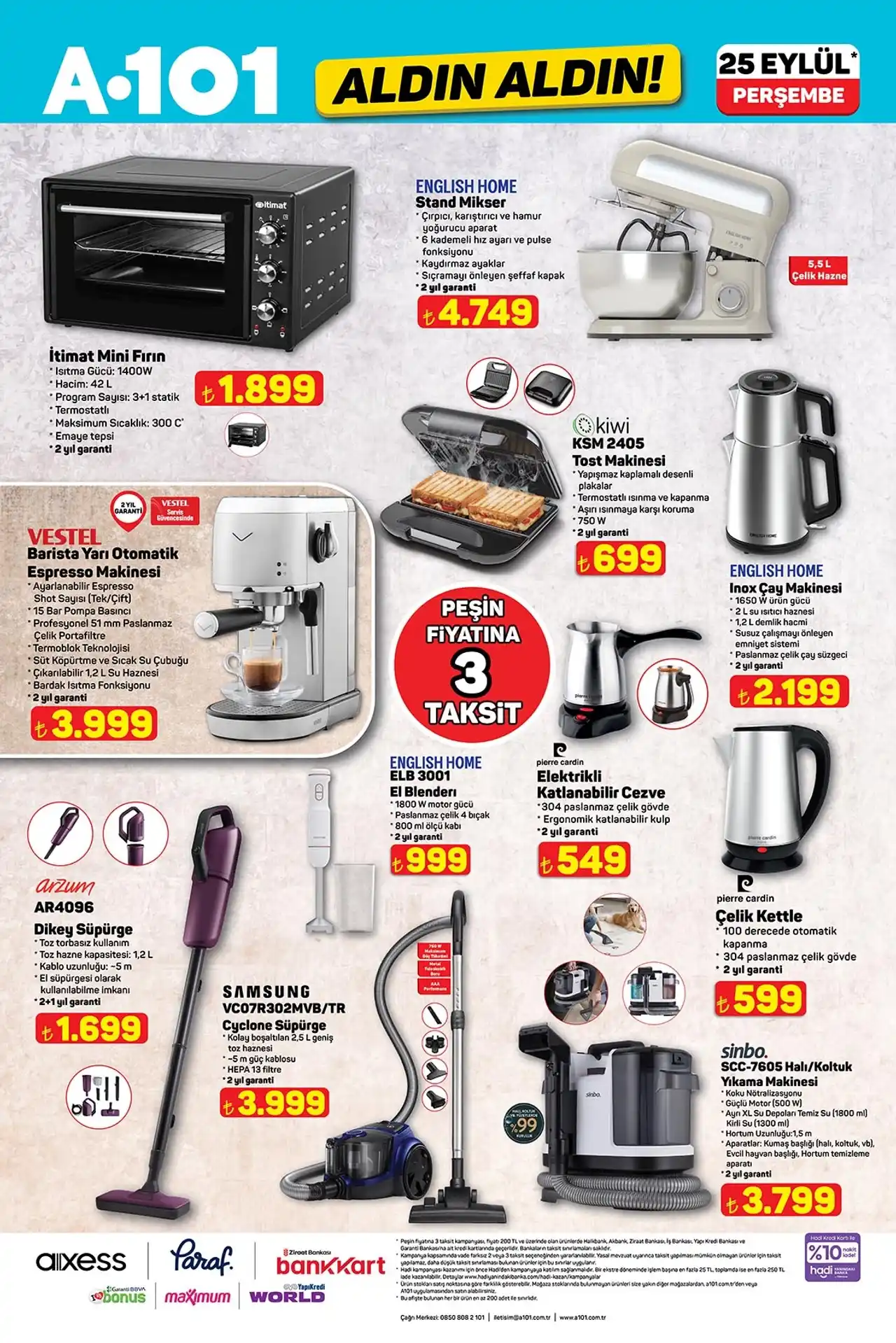 Öncelikle bir gelenek haline gelen televizyon fırsatları bu haftayı da es geçmiyor. 75 inç ve 32 inç ekranlara sahip 2 farklı televizyon uygun fiyatlara haiz olarak listeleniyor. Bunların dışında peşin fiyatına 3 taksit avantajıyla satılacak olan çok sayıda elektrikli ve elektronik ürün 25 Eylül 2025 perşembe günü sizlerle buluşuyor. Akım korumalı priz çoklayıcı 349 TL fiyatıyla, Canon G3430 tanklı yazıcı 5.299 tl fiyatıyla haftanın dikkat çekici ürünleri arasında yerine alıyor.