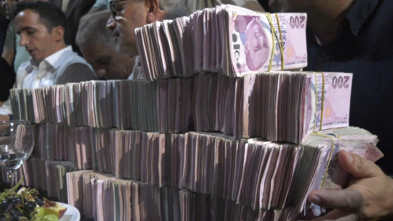 Bilecik'in Gölpazarı ilçesinde düzenlenen düğünde Kuşça Ören Köyü Muhtarı Mehmet Nar ile Rumeysa Alacalar dünya evine girdi. Düğünde Gölpazarı Muhtarlar Derneği Başkanı İsmail Gücen ve muhtar arkadaşları, 15 metre uzunluğunda birbirine 200 liralık para ekli kurdeleyle düğün salonuna girerek genç çifte taktılar. Düğüne katılan misafirlerde daha önce böyle bir takı görmediklerini belirtiler.