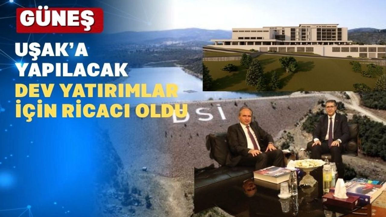 Uşak’ın yıllardır sıkıntı çektiği; içme suyu, sağlık tesisi, yol gibi sorunlarının çözümlenmesi için AK Parti Uşak Milletvekili Dr. İsmail Güneş, bu projelerin yatırım programına alınması amacıyla, Cumhurbaşkanlığı Strateji ve Bütçe Başkanı İbrahim Şenel’i makamında ziyaret ederek görüş alışverişinde bulundu.