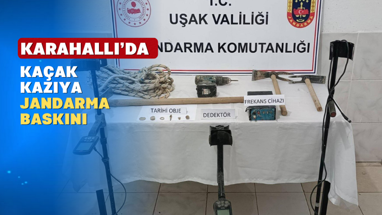 Uşak II Jandarma Komutanlığı ekipleri, Sivaslı Cumhuriyet Başsavcılığı koordinesinde yürütülen çalışmalar kapsamında Karahallı ilçesinde izinsiz kazı yapan 3 kişiyi suçüstü yakaladı.