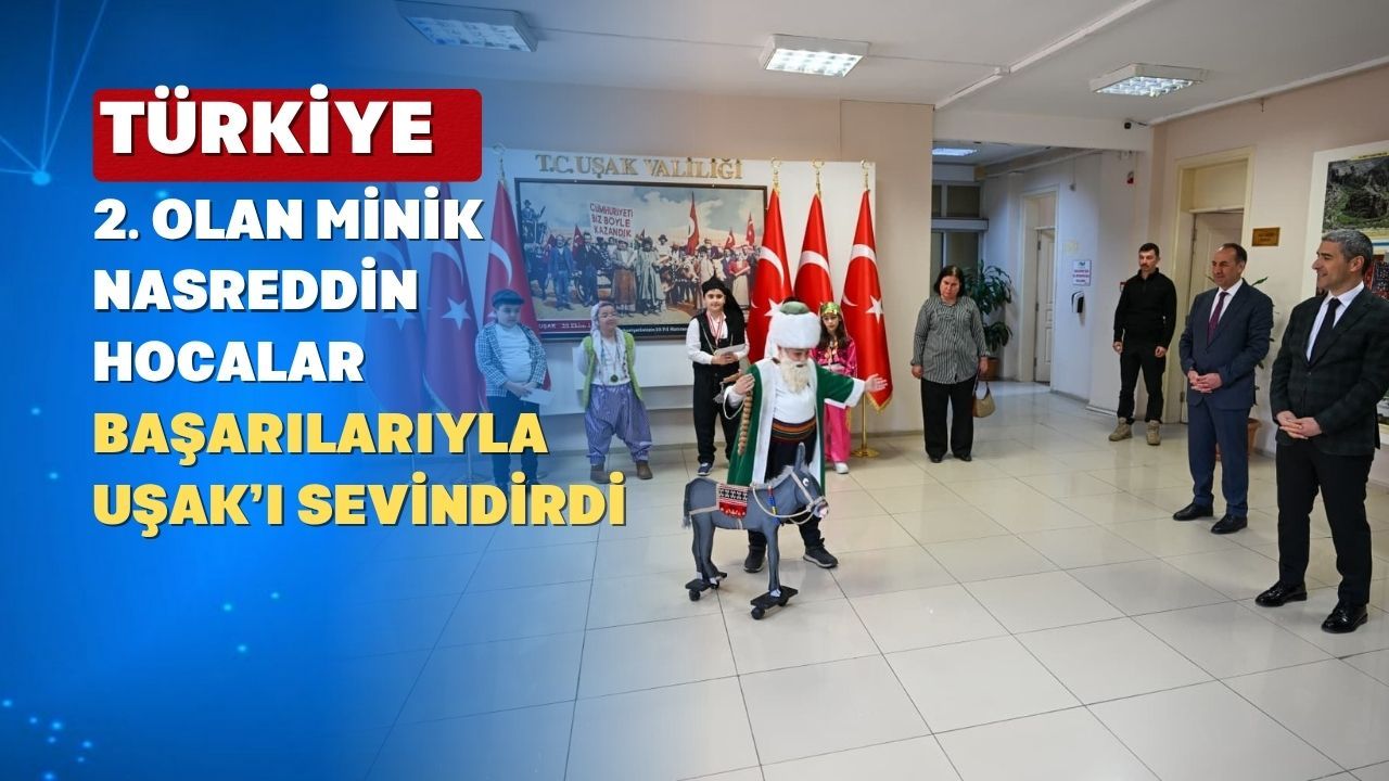 Nasreddin Hoca Anma Günleri” kapsamında düzenlenen 9. Ulusal İlkokullar Arası Nasreddin Hoca Fıkra Canlandırma Yarışması Türkiye Finali’nde Türkiye 2’ncisi olan Eşe ve Halil Erdoğdu İlkokulu öğrencileri ve öğretmenleri, İl Millî Eğitim Müdürü Halil Yücel ile birlikte Uşak Valisi Dr. Naci Aktaş’ı makamında ziyaret etti.