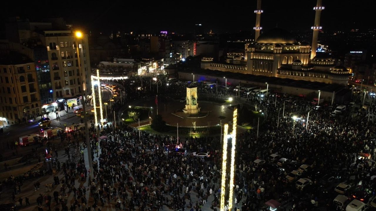 Beyoğlu Taksim Meydanı ve İstiklal Caddesi'nde yeni yılı karşılamak isteyen yerli ve yabancı turistlerin oluşturduğu yoğunluk ile kutlama coşkusu havadan görüntülendi.