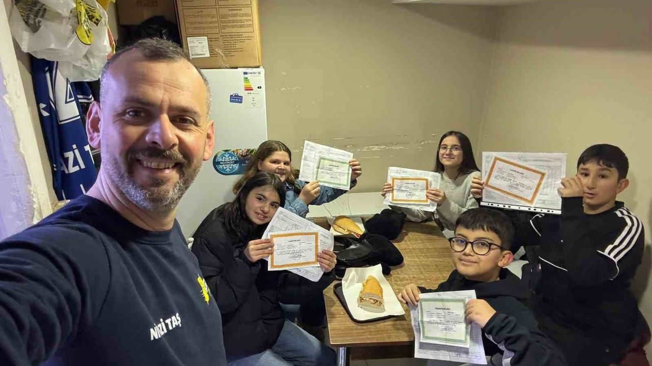 Öğrencilere her sene karne günü etkinliği yaptığını belirten Taş, 'Bu senede 2025-2026 eğitim öğretim yılının ilk dönemini bitirdik. Bizde başarılı öğrencileri ödüllendirmek adına her dönem yapmış olduğumuz gibi belge alan öğrencilerimizi belgeleriyle geleme şartıyla döner ve ayran ikramı olacak' dedi.