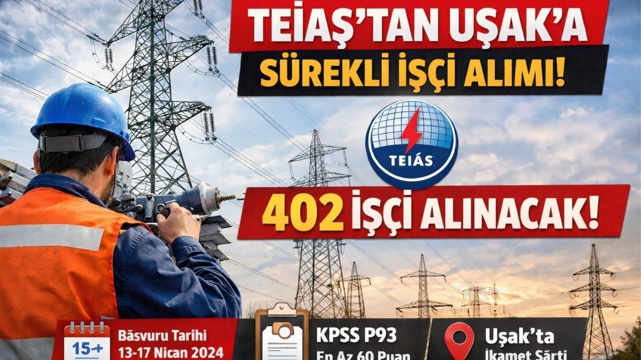 İŞKUR Türkiye Elektrik İşletmeleri Anonim Şirketi (TEİAŞ), Türkiye genelinde sürekli çalıştırılmak üzere 402 elektrikçi alınacağını açıkladı. İŞKUR Uşak Müdürlüğü tarafından yapılan açıklamada alınacak kişilerin 2 yıllık ön lisans Meslek Yüksek okul mezunu olmaları gerektiği, ve başvuruların 13 – 17Nisan tarihleri arasında yapılabileceği belirtildi.