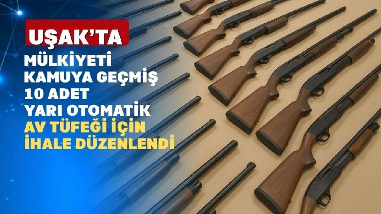 Tarım ve Orman Bakanlığı 5. Bölge Müdürlüğü Uşak Doğayı Koruma ve Milli Parklar İl Şube Müdürlüğü tarafından yapılan duyuruya göre, mülkiyeti kamuya geçen ve Uşak merkezde bulunan 10 adet yarı otomatik av tüfeği açık artırma usulüyle satışa sunulacak. Tüfeklerin markaları, modelleri, kalibreleri, seri numaraları ve tahmini bedelleri şöyle sıralandı: