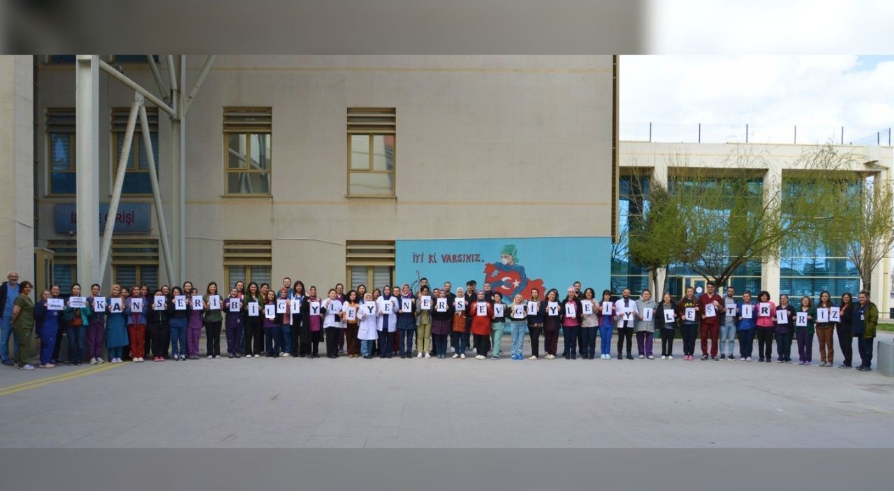 Hastane bünyesinde görev yapan doktor, hemşire ve diğer sağlık personelinin katılımıyla gerçekleştirilen etkinlikte, “Kanseri Bilgiyle Yener, Sevgiyle İyileştiririz” mesajı güçlü bir görselle kamuoyuna aktarıldı. Sağlık çalışanları, sloganın her bir harfini ellerinde taşıyarak oluşturdukları insan zinciriyle hem hastalara moral verdi hem de topluma umut mesajı gönderdi.