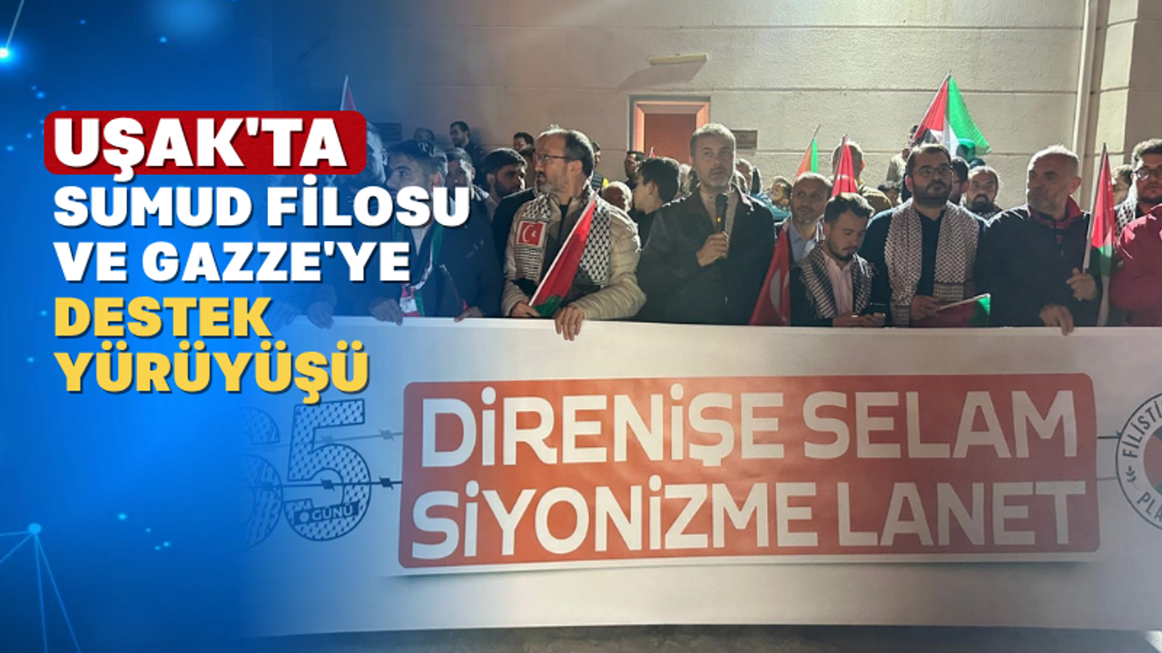 Uşak’ta Cumhuriyet Mahallesi’nde bulunan Atapark Meydanı’nda toplanan vatandaşlar Sumud Filosu ve Gazze’ye destek için yürüyüş yaptı.