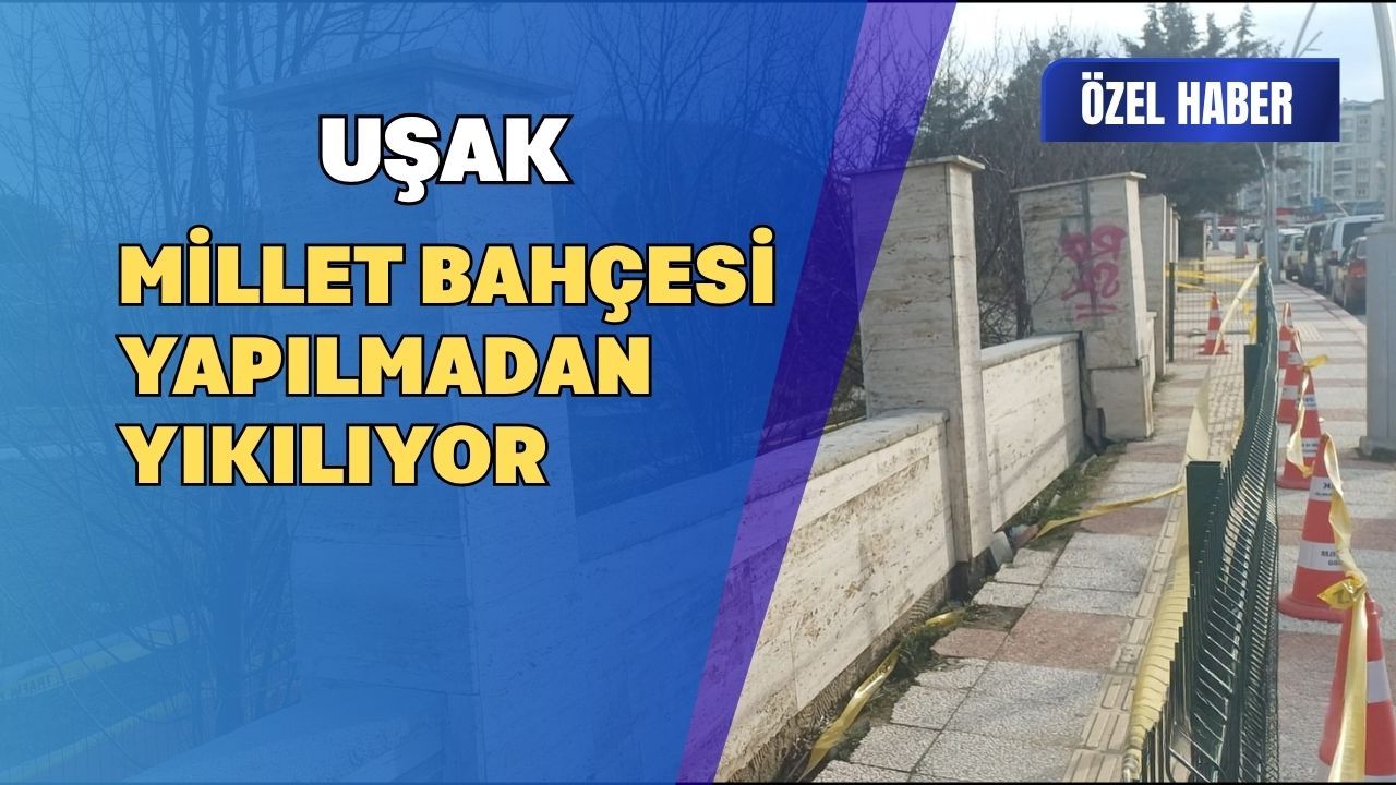 Uşak’ta yapımına 2015 yılında başlanan ve bir türlü tamamlanamayan Uşak Millet Bahçesi duvarı çökmek üzere. Topraktan ayrılan duvar çevresi, şeritler ve dubalarla çevrilerek vatandaşın can güvenliği sağlanmaya çalışıldı.