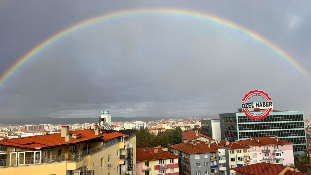 Dün ikindi vakti Uşak’a yağan yağmur sonrası gökyüzünde görülen gökkuşağı görüntüsü, Uşaklılara görsel bir şölen yaşattı. Gökyüzünü adeta bir kuşak gibi saran gökkuşağı büyüleyici bir doğa manzarası oluşturdu.