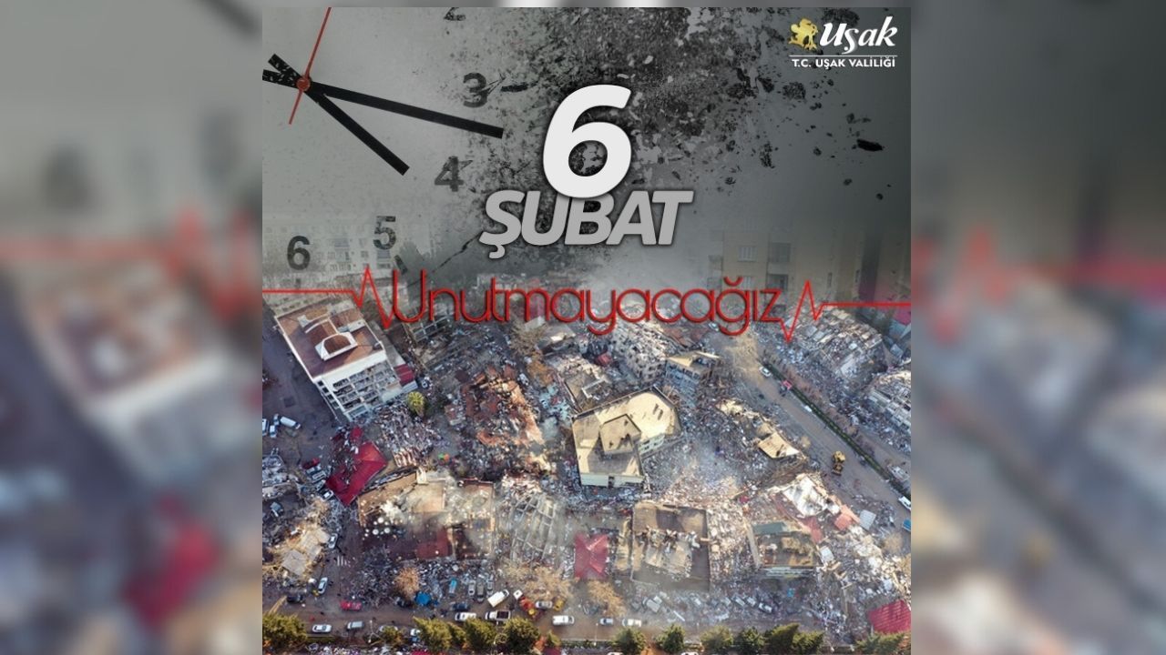 Uşak Valisi Dr. Naci Aktaş, 6 Şubat 2023'te meydana gelen ve 53 bin 537 canımızı yitirdiğimiz Kahramanmaraş merkezli meydana gelen depremlerin 3. yıldönümü nedeniyle bir anma mesajı yayımladı.