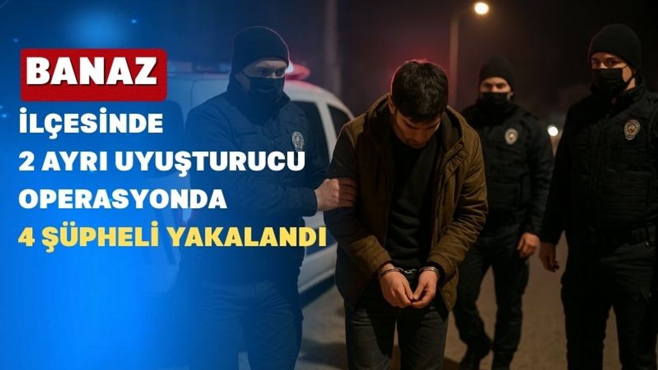Banaz’da dün gece gerçekleştirilen iki ayrı yasaklı madde operasyonunda 4 şüpheli kıskıvrak yakalandı. Yasaklı madde kullanma ve satma şüphesiyle bir süredir takibe alınan şahıslar, yapılan operasyonlar sonucunda operasyon anında suçüstü yakalandı.