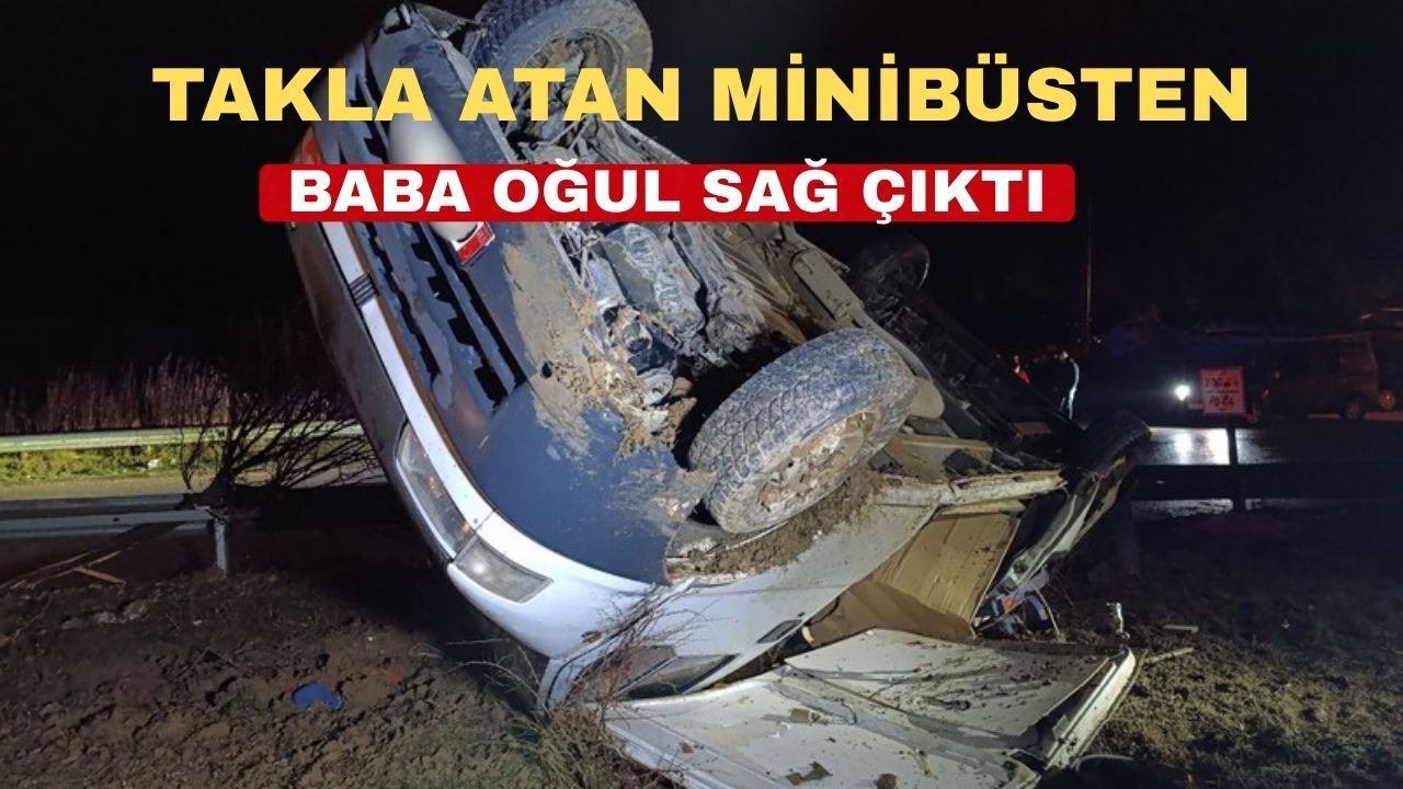 Banaz ilçesinde akşam saatlerinde meydana gelen trafik kazasında minibüsün takla atması sonucu baba ve oğlu yaralandı.