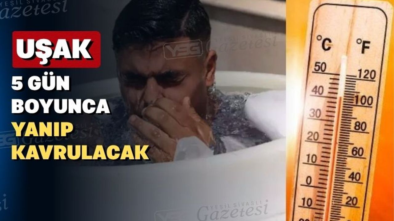 Meteoroloji Genel Müdürlüğü (MGM) tahminlerine göre, Uşak merkez ve diğer il ilçelerinde bugünden itibaren başlayarak önümüzdeki beş gün boyunca hava sıcaklığı rekor kıracak. Yarın (24 Temmuz Perşembe) günü termometreler 40 °C’yi gösterecek.