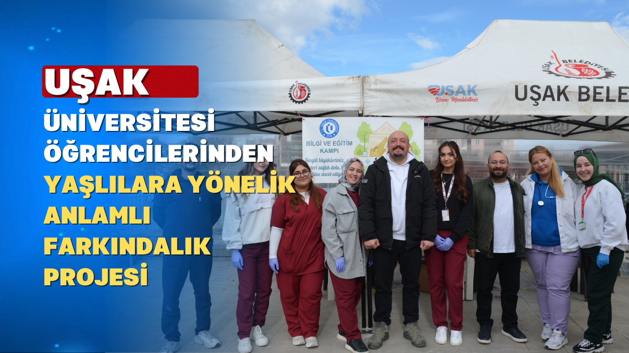 Uşak Üniversitesi Sağlık Hizmetleri Meslek Yüksekokulu Sağlık Bakım Hizmetleri Bölümü Yaşlı Bakım Programı 2. sınıf öğrencileri, yaşlılara yönelik farkındalık oluşturmak amacıyla hazırladıkları proje kapsamında Atapark Kulealtı yanında bilgilendirme standı açtı