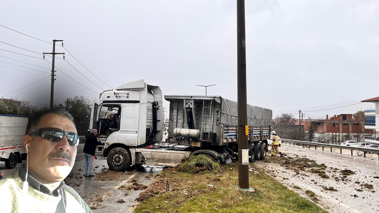 Manisa’nın Kula ilçesinde yağışlı havanın da etkisiyle kayganlaşan yolda sürücüsünün kontrolünden çıkan tır orta refüje çıkarken kazada sürücü yara almadı.