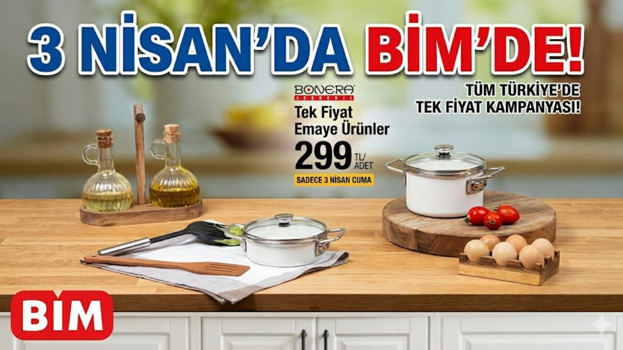 3 Nisan Cuma günü başlayacak olan "Tek Fiyat Emaye Kampanyası" ve diğer indirimli ürünler stoklarla sınırlı. Mutfağınıza renk katmak ve ihtiyaçlarınızı uygun fiyata tamamlamak için en yakın BİM mağazasına uğramayı ihmal etmeyin!