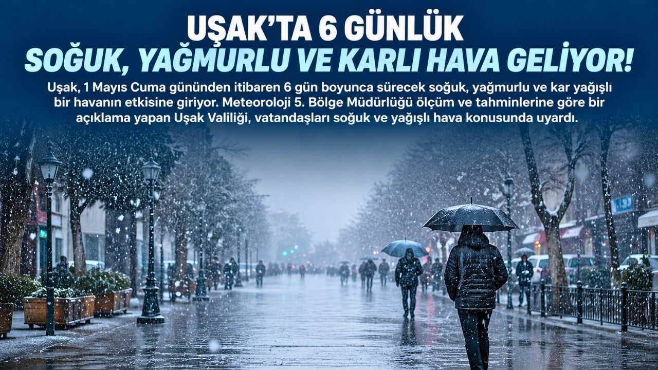 Meteoroloji 5. Bölge Müdürlüğü ölçüm ve tahminlerine göre bir açıklama yapan Uşak Valiliği, vatandaşları soğuk ve yağışlı hava konusunda uyardı.