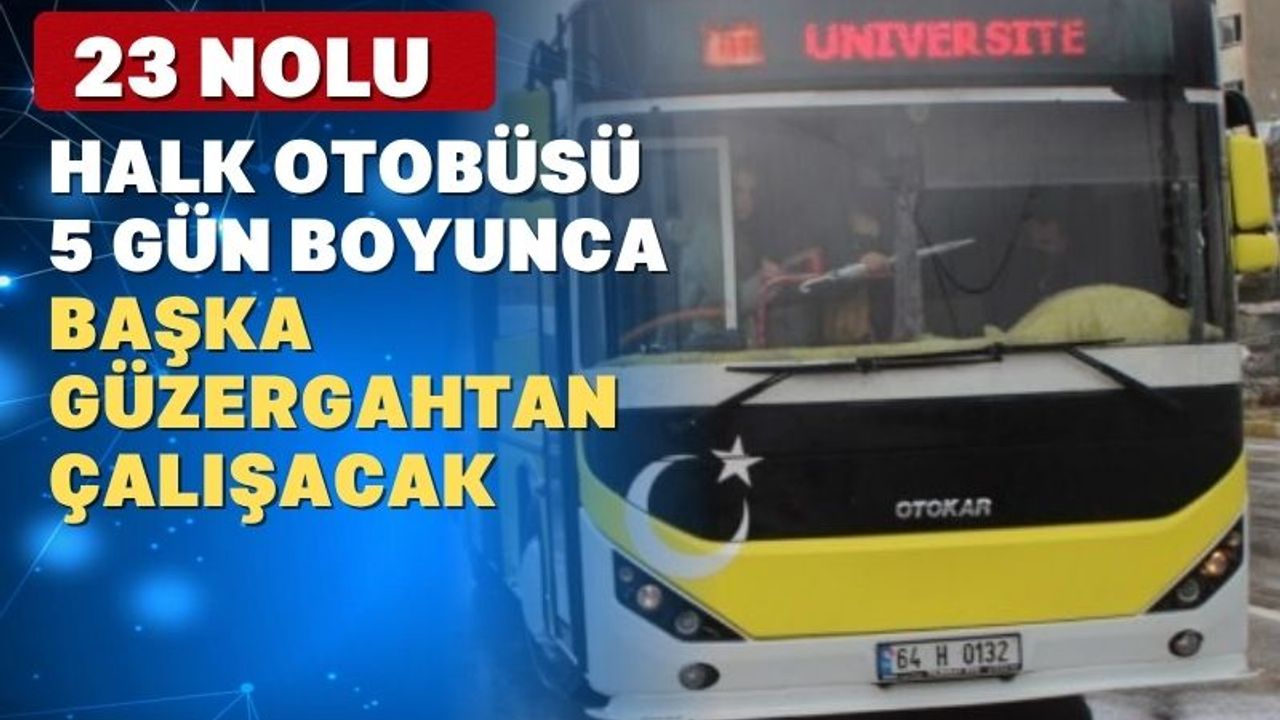 Uşak Belediyesince yapılan açıklamaya göre; 01 Ekim (Bugün) tarihinde Uşak Merkez-Dikilitaş-Üniversite Hattında çalışan 23 nolu halk otobüsünün geçtiği Ünalan Mahallesi Güldibi Sokak’ta yıkım yapılacağı için 05 Ekim tarihine kadar otobüs güzergahının değişeceğini duyurdu.