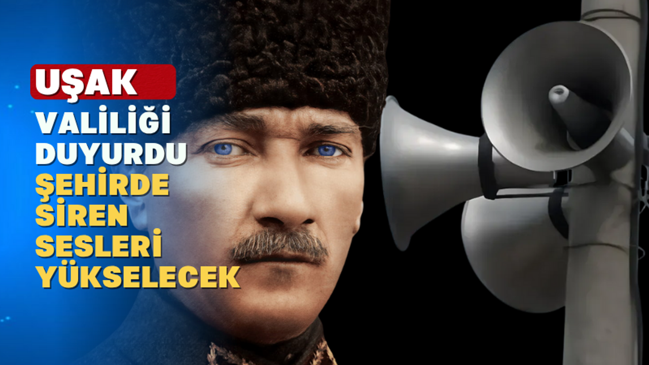 Uşak Valiliği, Cumhuriyetin Kurucusu Gazi Mustafa Kemal Atatürk'ün vefatının 87. yılı dolayısıyla 10 Kasım'da çalınacak sirenler öncesinde kent genelinde deneme yapılacağını duyurdu
