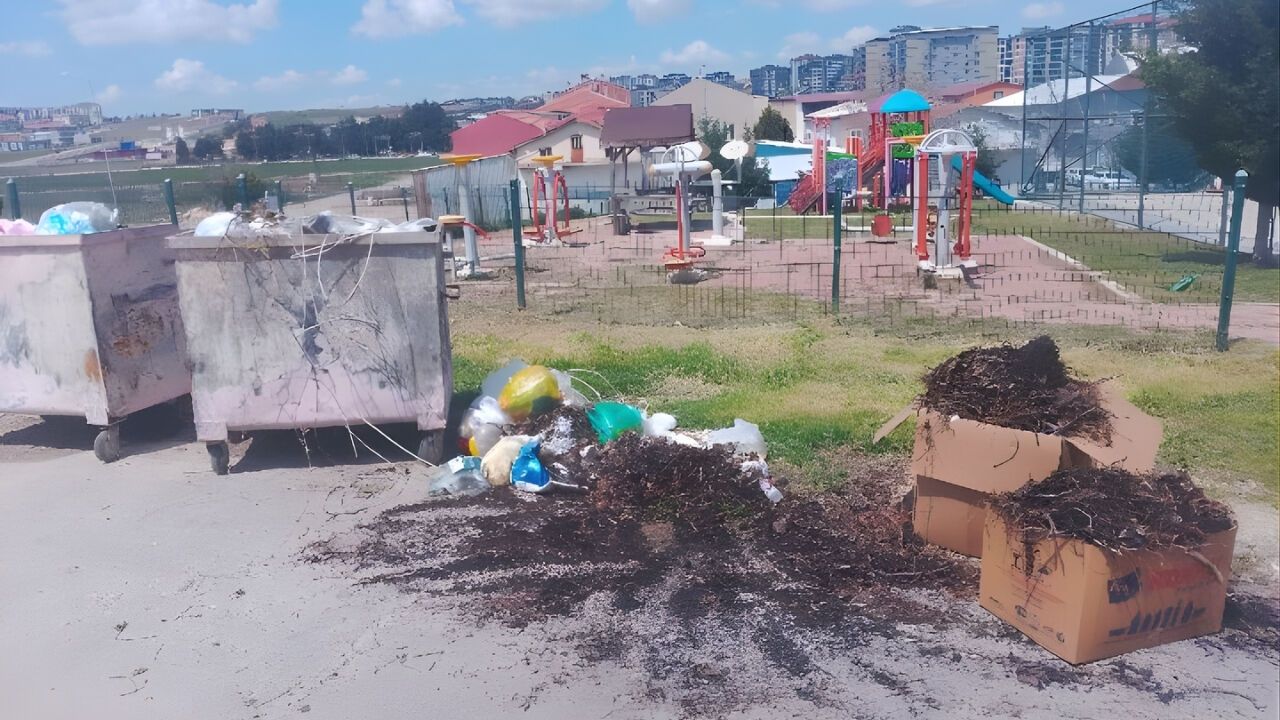 Görüntülerde, konteynerlerin yanında biriken evsel atıkların yanı sıra karton kutular ve bahçe atıklarının da gelişigüzel bırakıldığı dikkat çekiyor. Çocuk parkına yakın bir noktada oluşan bu manzara, özellikle aileleri endişelendiriyor.