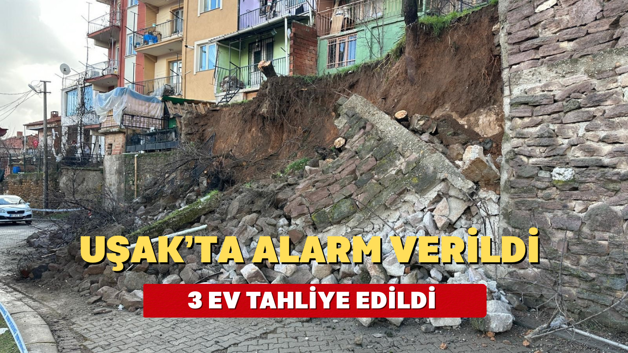 Uşak'ta etkili olan yağışlar nedeniyle istinat duvarı çökmesi ve toprak kayması meydana gelirken, farklı mahallelerde toplam 3 ev tedbir amaçlı tahliye edildi.