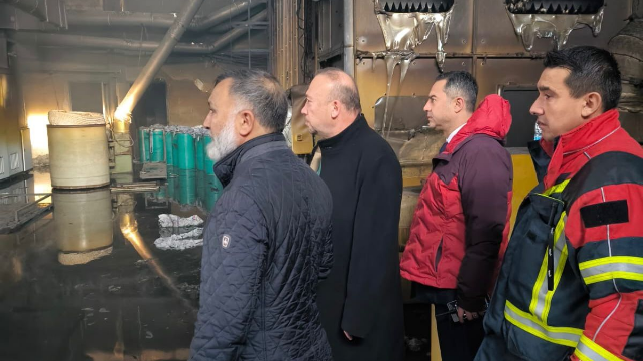 Uşak Belediyesi tarafından yapılan açıklamaya göre, Özkan Yalım ile Belediye Başkan Yardımcısı Çağlar Samancı, Karma Organize Sanayi Bölgesinde bulunan Kardelen Elyaf ve İplik Fabrikası'nda çkıan yangınla ilgili incelemelerde bulundu.