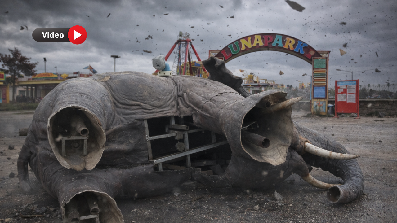 Uşak’ta hayatı olumsuz etkileyen fırtınanın devirdiği en ilginç nesne, Sivaslı yolu üzerinde bulunan Lunapark girişindeki fil maketi oldu.
